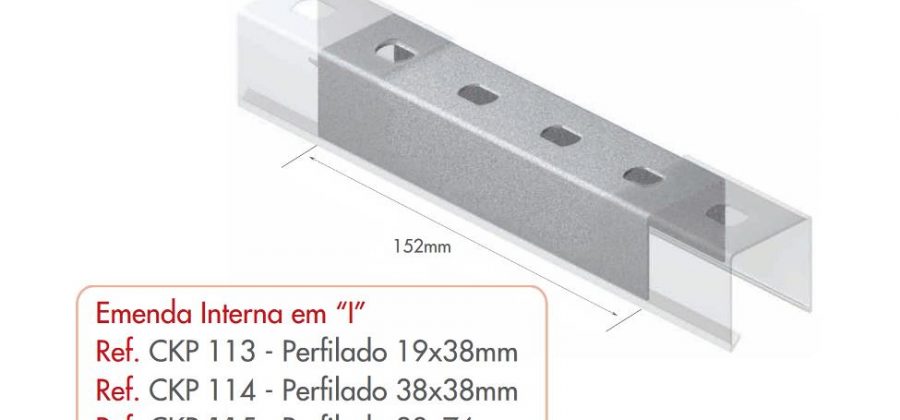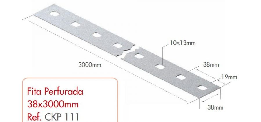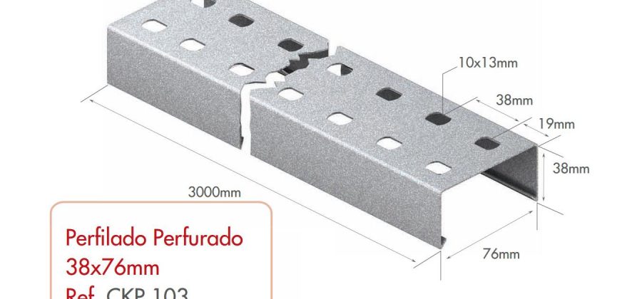 Perfilado liso 19×38 mm ou Perfilado Perfurado 19×38 mm Estes perfilados possuem 2 furos nas pontas de 10×13 mm, para união e conexão com os demais componentes