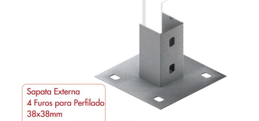 Sapata Externa 4 Furos para Perfilado 38x38mm